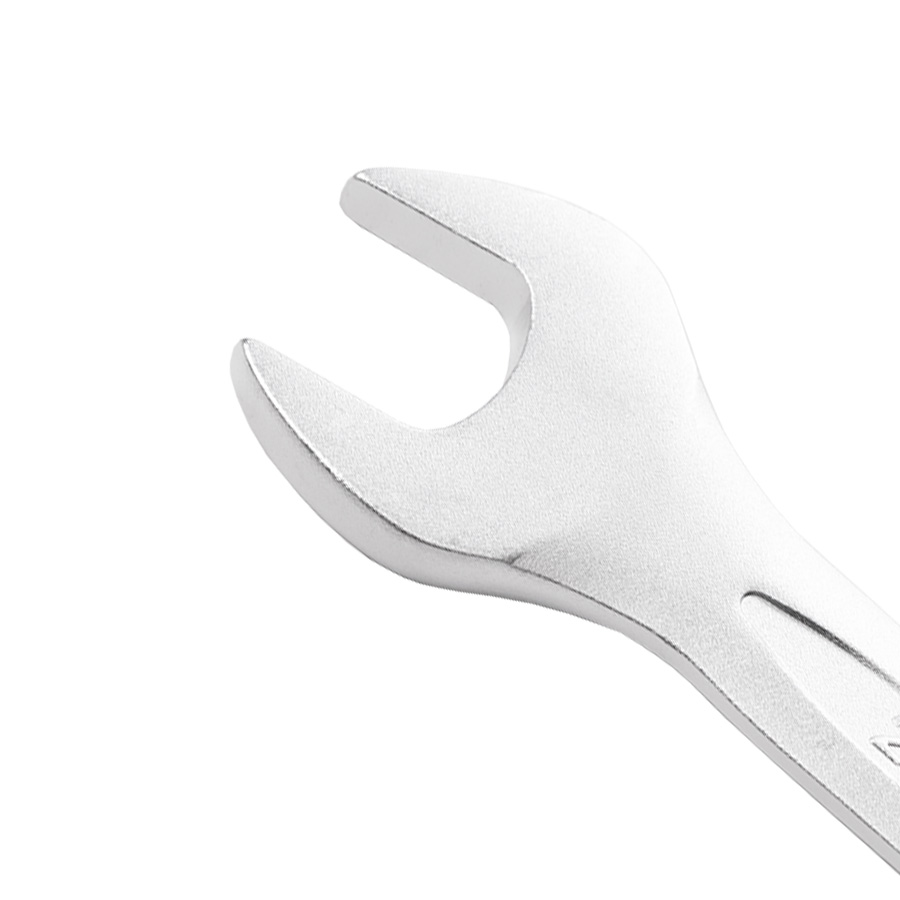 Финишная обработка Soft matt и хром никелевое покрытие комбинированного ключа обеспечивает надежную защиту от коррозии, а также надежный хват и препятствует выскальзыванию инструмента из рук. 12-гранный профиль накидной части подходит к головкам болтов и гайкам как 6-, так и 12-гранного профиля, и обеспечивает 5 градусный шаг перехвата. Специальный отгиб, в 15 градусов накидной части ключа позволит работать в местах с ограниченным доступом к крепежу и поможет подобраться к крепежу как с торца, так и с боку, в зависимости от места выполняемых работ.