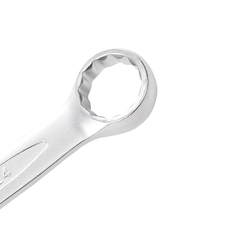 Финишная обработка Soft matt и хром никелевое покрытие комбинированного ключа обеспечивает надежную защиту от коррозии, а также надежный хват и препятствует выскальзыванию инструмента из рук. 12-гранный профиль накидной части подходит к головкам болтов и гайкам как 6-, так и 12-гранного профиля, и обеспечивает 5 градусный шаг перехвата. Специальный отгиб, в 15 градусов накидной части ключа позволит работать в местах с ограниченным доступом к крепежу и поможет подобраться к крепежу как с торца, так и с боку, в зависимости от места выполняемых работ.