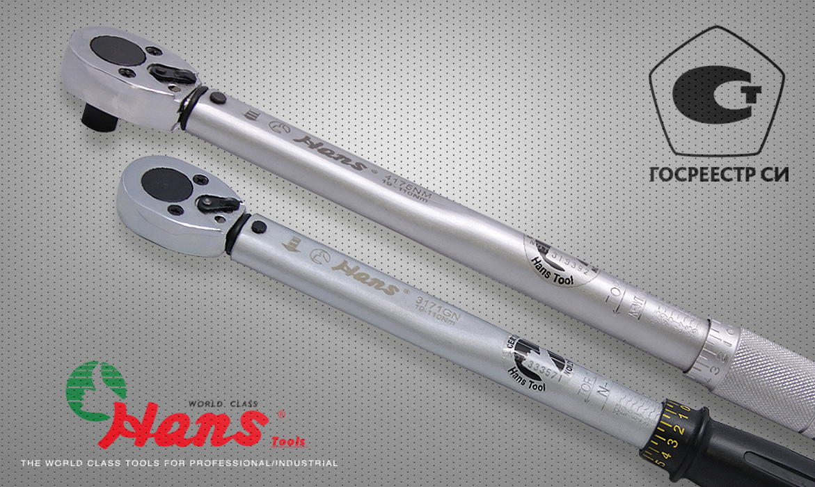 Динамометрические ключи Hans NM и GN утверждены как тип средств измерений приказом Федерального агенства по техническому регулированию и метрологии от 09 марта 2017г №471 и внесены в ГРСИ (Государственный реестр средств измерений) №66900-17.